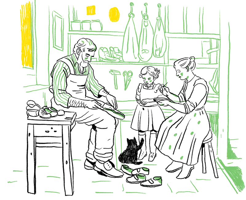 Darf man es „Werkstatt“ nennen, wenn ein Schuhmacher inmitten der Wohnstube des Bauernhauses – wohlgemerkt der ständige Aufenthaltsort für die gesamte Familie – arbeitet?
