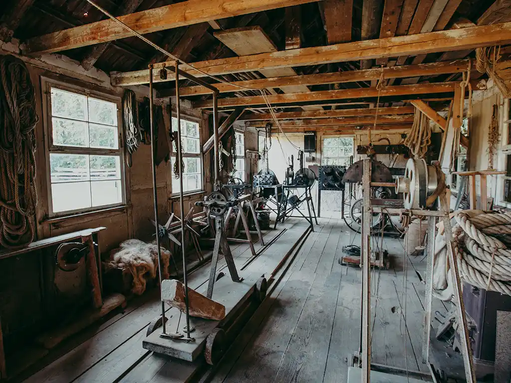 Das Seilereigebäude besteht leicht erkennbar aus zwei Teilen: der 12 Meter lange Werkstatt und daran anschließend die 68 Meter lange Seilbahn. Das Werkstattgebäude wurde komplett – „am Stück“ – vom Ursprungsort ins Museum verbracht.